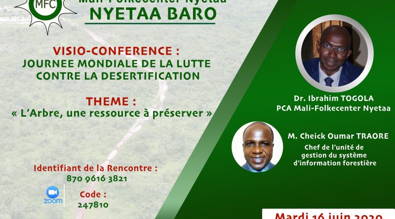 Dans le cadre de la quinzaine de l’environnement, Mali-Folkecenter Nyetaa organise une visio-conférence Nyetaa Baro avec le thème: L’arbre, une ressource à préserver. C’est ce  mardi 16 juin 2020 à partir de 15h:20mn. Vous y êtes invités cordialement.
